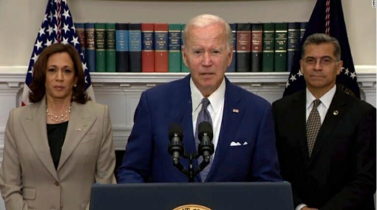 Biden and Vice President Kamala Harris along with Health and Human Services Secretary Xavier Becerra held a joint press conference to announce his signing of an executive order to expand women’s access to abortion rights within the limitations imposed by the Supreme Court ruling.