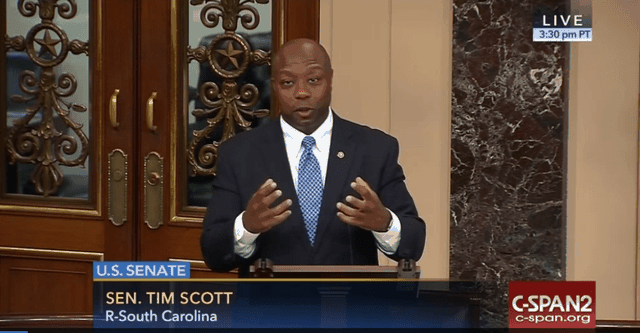 Talking to his fellow senators, Scott told them to “recognize that just because you do not feel the pain, the anguish of another, does not mean it does not exist.”